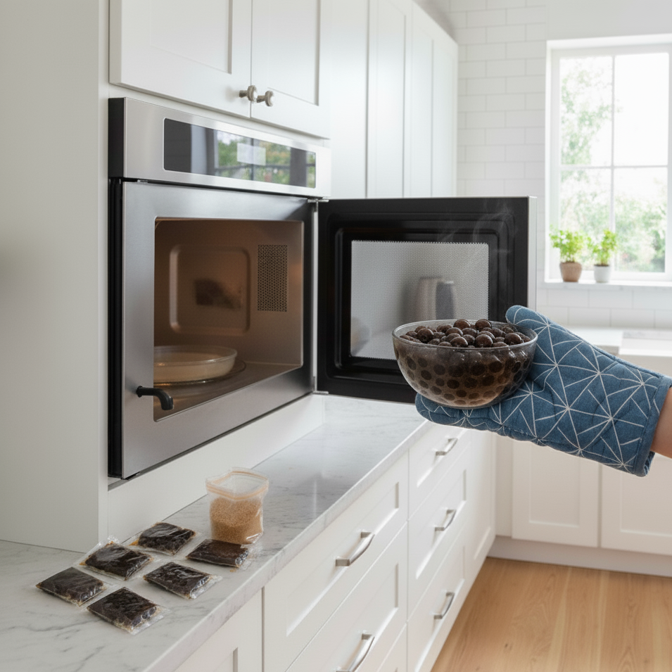 - Si no cuentas con microondas, vaciar la tapioca en una olla con agua hirviendo y dejar 1 minuto.